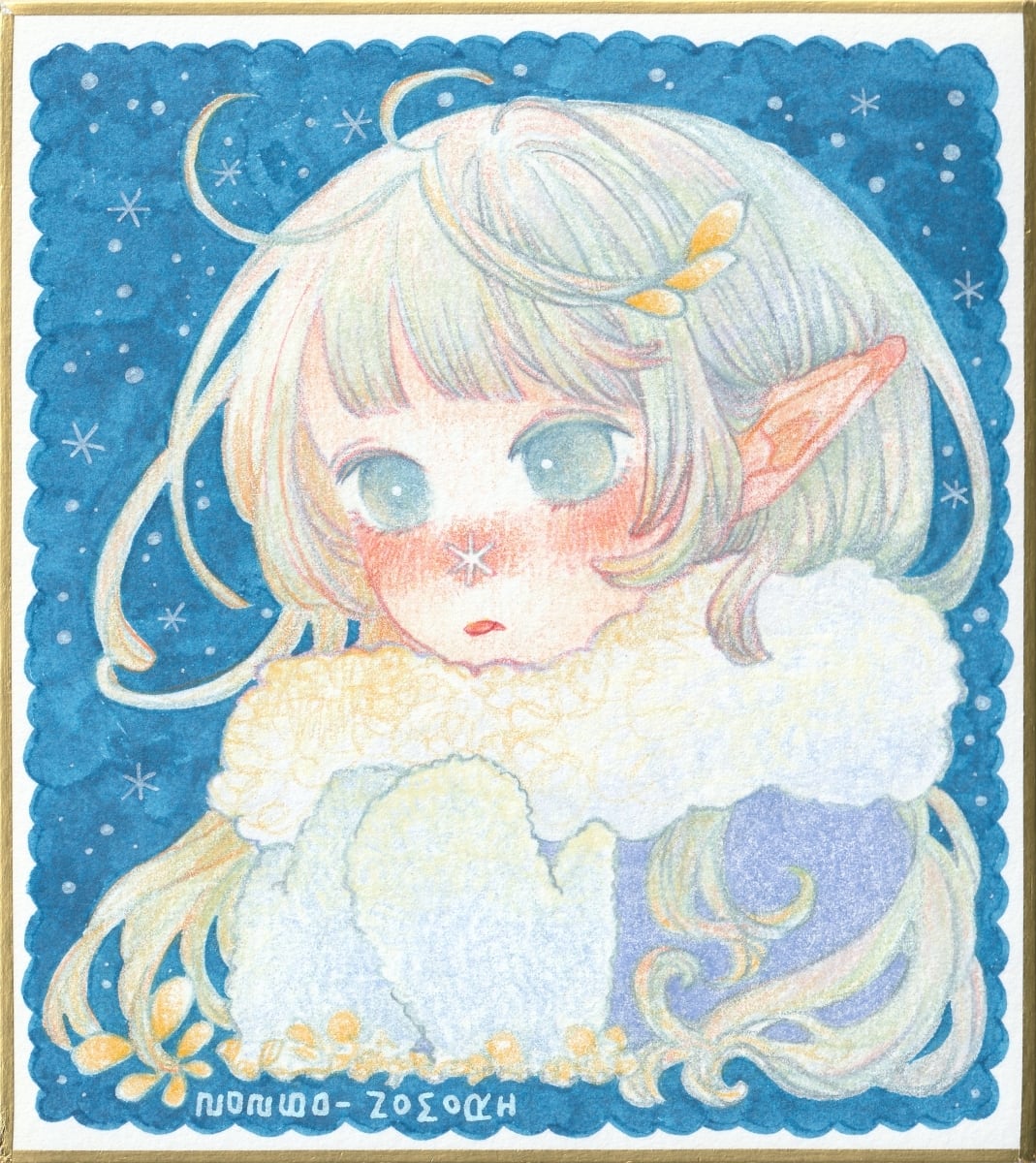 ・色鉛筆、筆ペン、ボールペン、ウォーターフォード水彩色紙 ホワイト